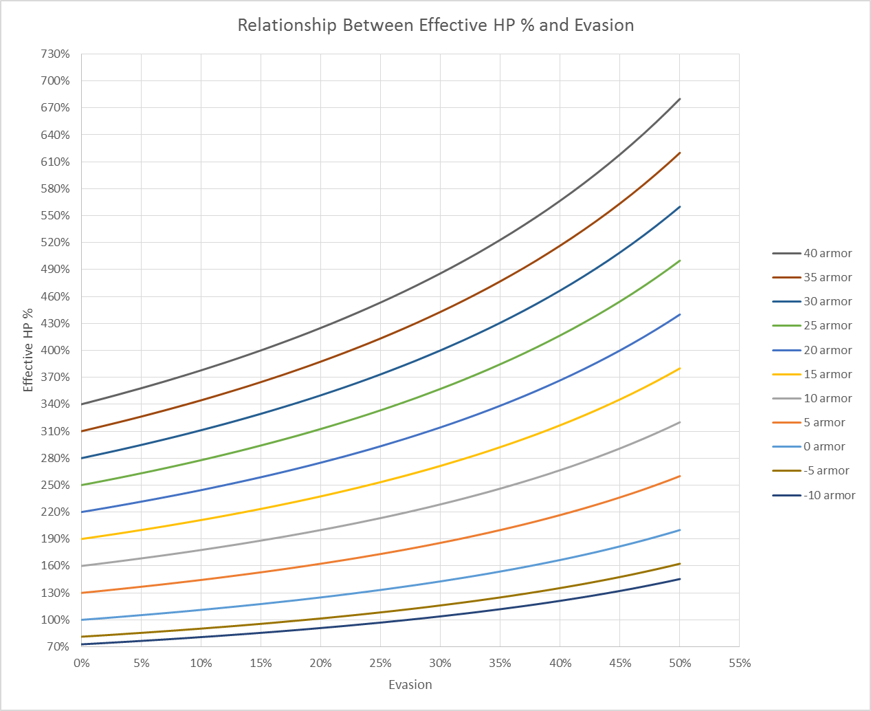Несколько источников уклонения сочетаются мультипликативно, также, как и другие источники шанса промахнуться, такие, как ослепление и шанс промаха при атаке юнита на возвышености. Если фактический шанс уклониться уменьшается, каждый источник уклонения увеличивает эффективное здоровье против физических атак больше, чем дает экспоненциальная природа уклонения. Шансы всех источников уклонения определяются псевдо-случайным распределением.