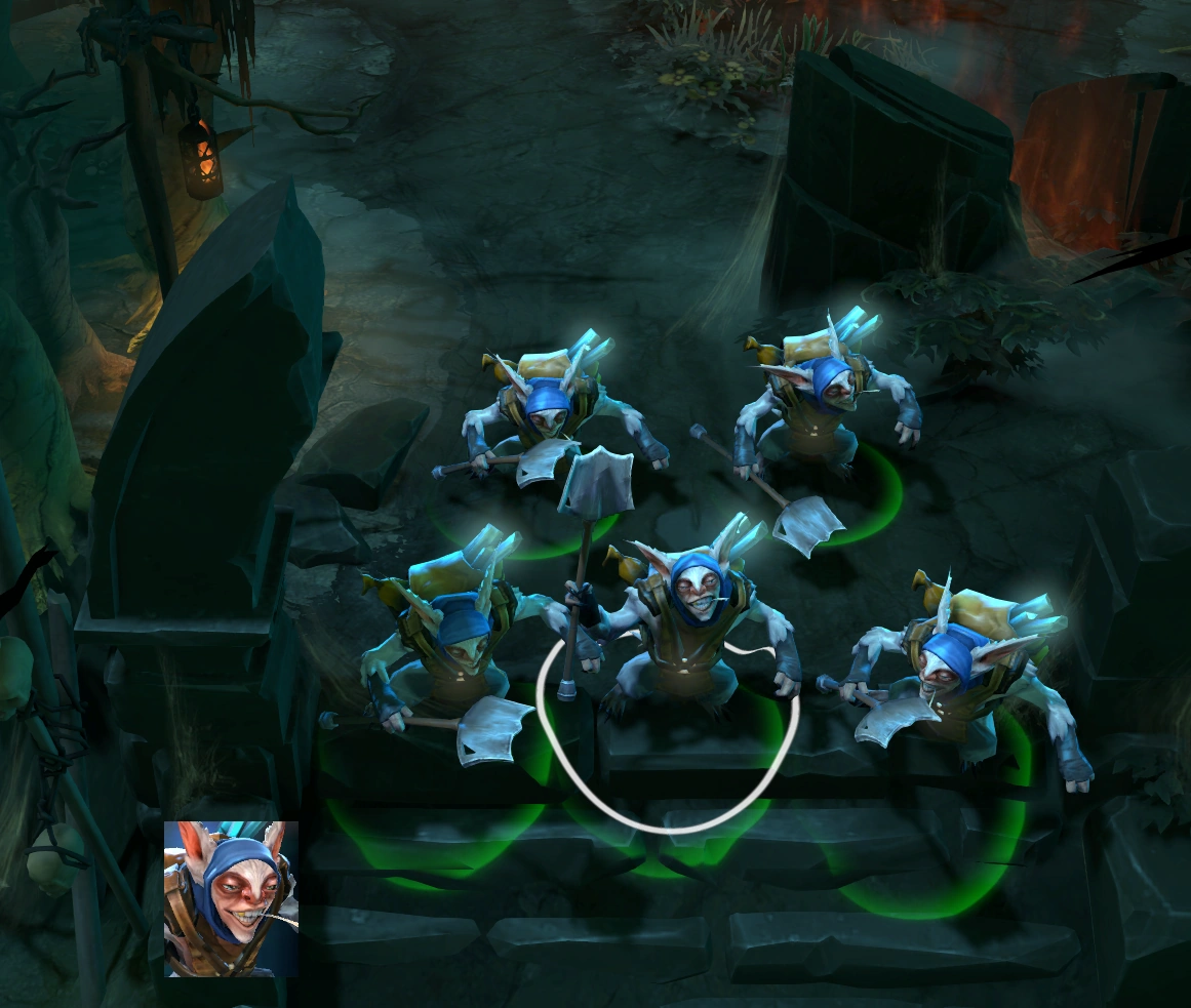 - Скрытые и неуязвимые клоны Meepo не перемещаются к основному Meepo.