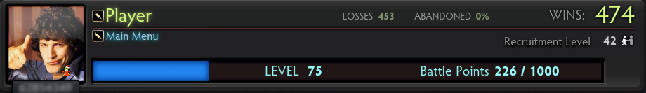 Battle Points and Profile Level information are shown at the top of your profile window. The gold border around the portrait indicates an active Battle Point Booster.