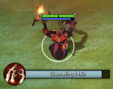 Channeled abilities may be ended early when the channeling unit performs another action or is interrupted by another ability or disables. While abilities are being channeled, a time remaining bar will appear on the screen, indicating how much time is left in the channel. Silence stops ability channeling, while Mute stops item channeling.