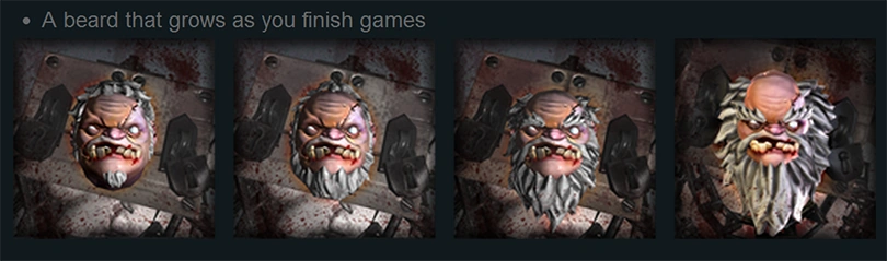 This item comes in 4 selectable styles that can be unlocked through a Inscribed Gem by playing games with the set equipped. It comes with a custom Rot particle effect.