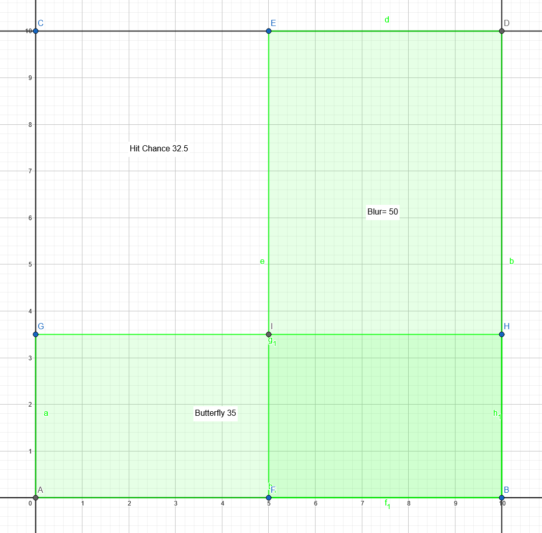 - Alternatively, Blur and Butterfly have the corresponding 0.5 and 0.65 chance to hit. Then the combined chance to hit is their product, showing a multiplicative stacking: