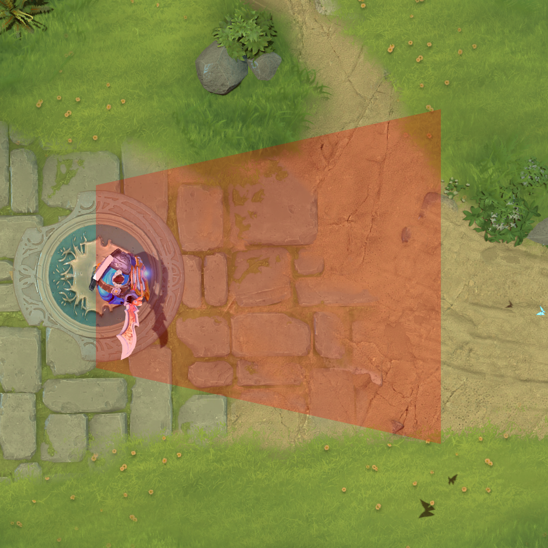 区域是一个矩形,其方向是基于弹道击中时圣堂刺客的位置。圣堂刺客与攻击目标之间的区域不受影响。